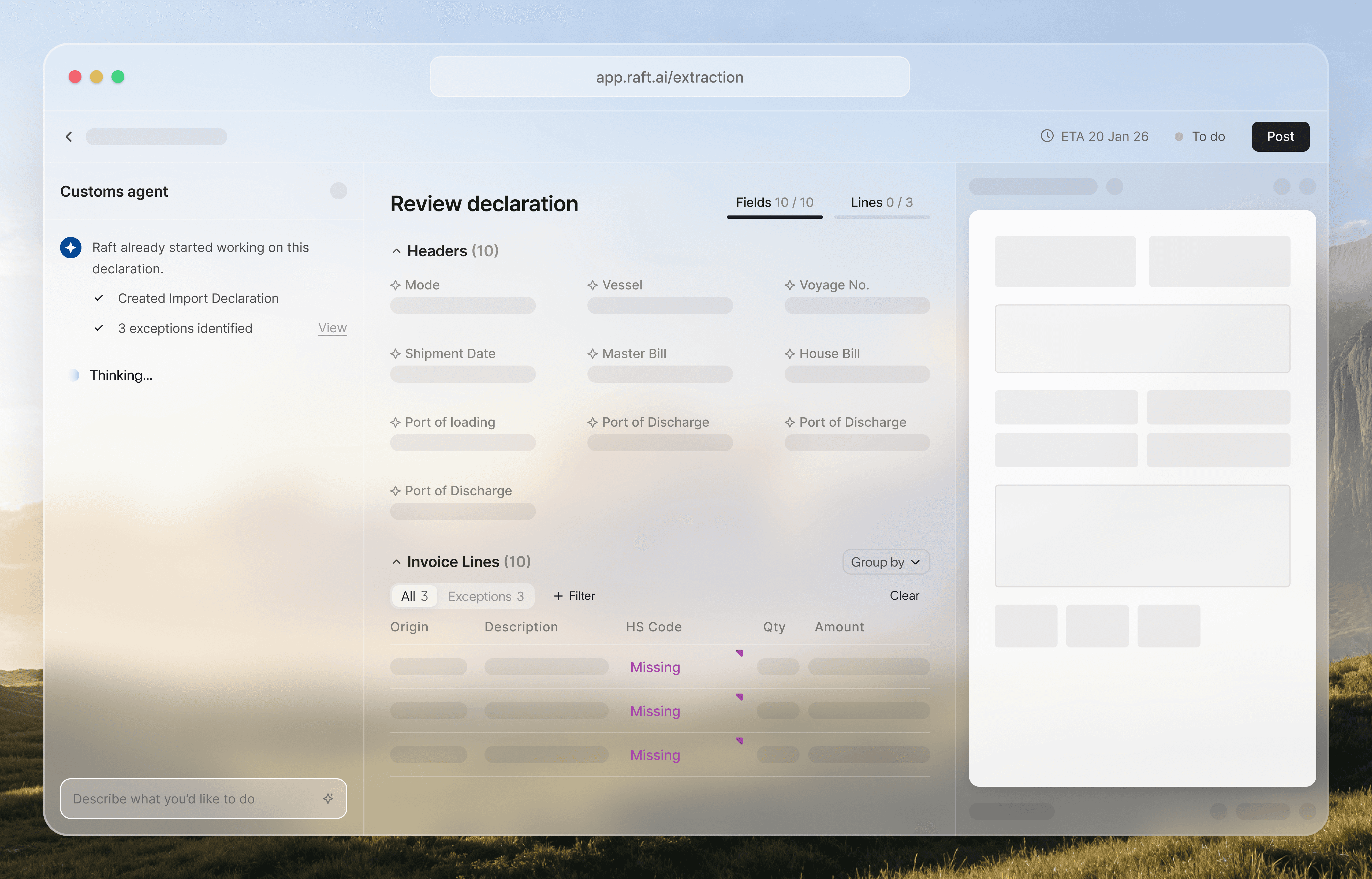 Deploy specialized customs agents that help your team prepare entries and assist with classification to the accuracy your compliance demands. Agents work closely with human review, so your expertise is applied where it matters most.