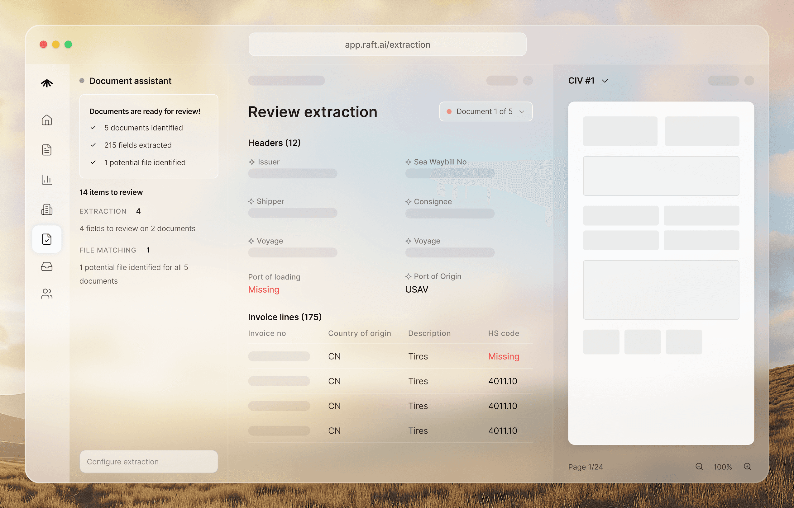 Automatically extract tariff-critical data from commercial invoices, packing lists, certificates of origin, and bills of lading, regardless of format or source. Custom extraction rules ensure data flows exactly where your workflow needs it.