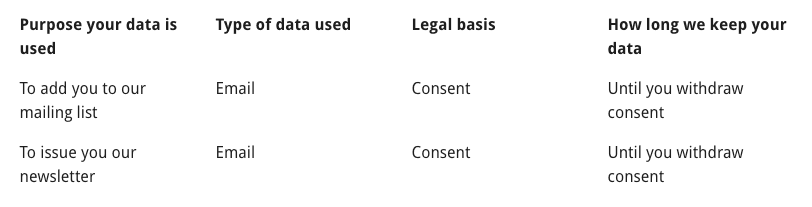 Contract – We need to use your data to fulfil a contract you have with us. Alternatively, it’s necessary to use your data because we have asked you to, or you have taken yourself, specific steps before entering that contract.